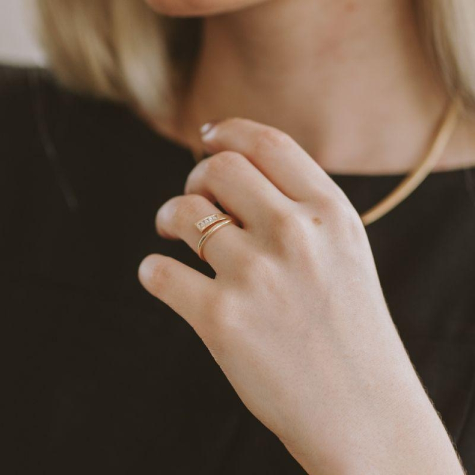 Anel Torcido com 4 Zircônias Delicado Banh...